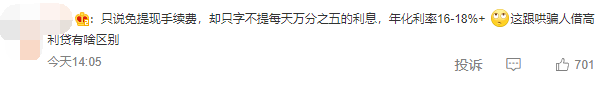 最后,对有应急、短期资金需求的持卡人来说,微信、支付宝“信用卡取现”是一个不错的渠道。但综合取现的资金成本,短期内很难撼动目前广大持卡人取现方式,如上面这条微博网友的留言。